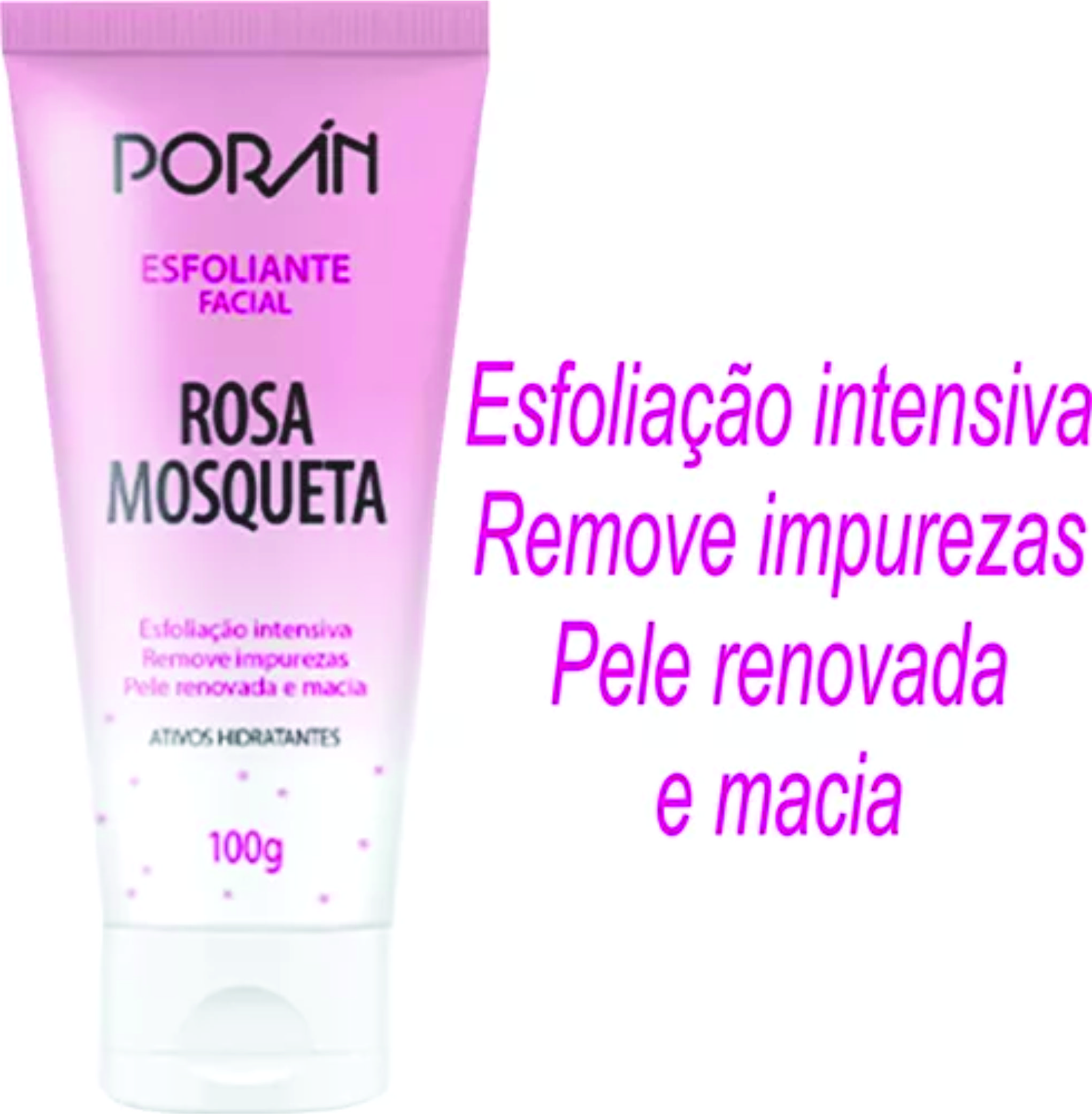 O Esfoliante Facial Rosa Mosqueta 100g Porán promove uma esfoliação intensiva, remove impurezas, células mortas, estimulando a renovação da pele e desobstrução dos poros.