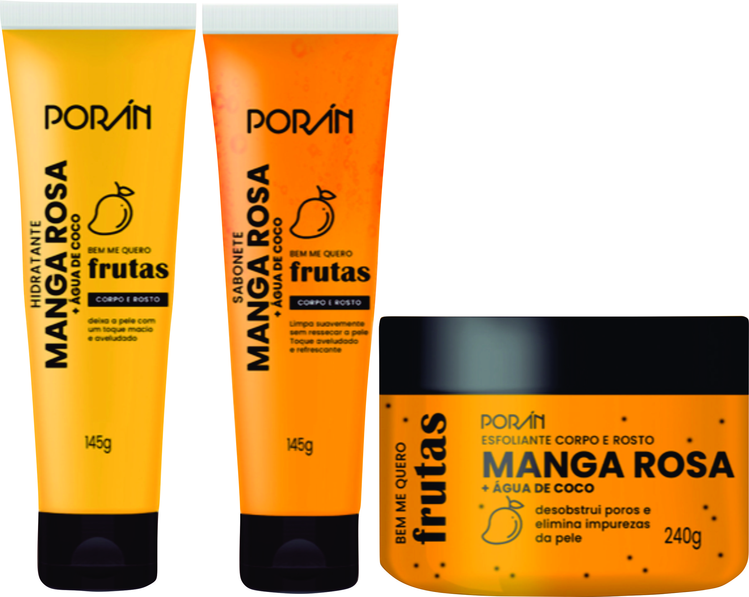- O Sabonete Corpo e Rosto de Manga Rosa Porán, limpa delicadamente a pele proporcionando hidratação, maciez e um toque aveludado