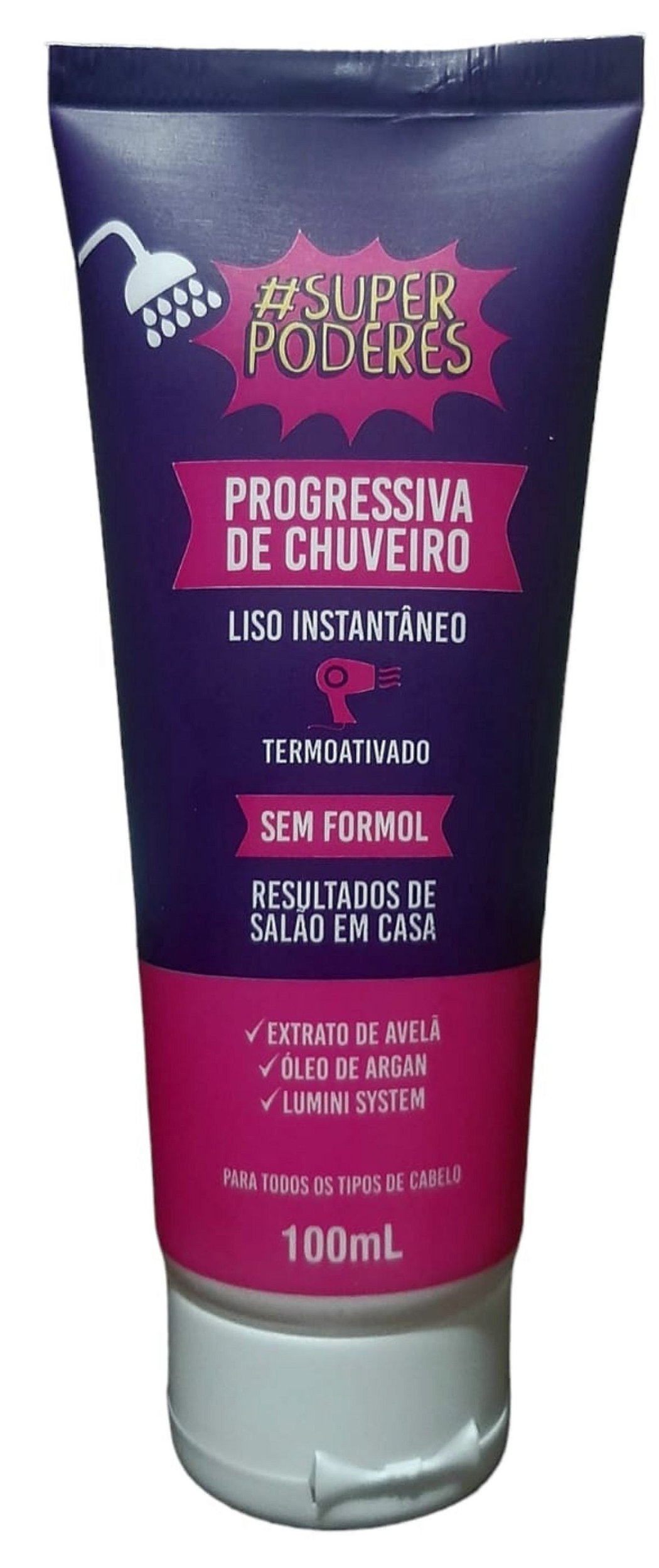A Progressiva de Chuveiro Efeito Liso Instantâneo #superpoderes é uma máscara capilar de fácil utilização e efeito instantâneo (cabelos lisos em 15 minutos). Facilita a vida de quem quer ter os cabelos lisos, mas não está a fim de perder tempo indo ao salão de beleza. Possui em sua formulação o Lumini System, que proporciona brilho tridimensional, protege a cor dos cabelos tingidos e possui efeito liso e ação anti-frizz. Ela trata enquanto alisa os seus cabelos, pois também contém Pantenol, Extrato de Avelã e Óleo de Argan. E o melhor, não contém Formol, nem parabenos.
